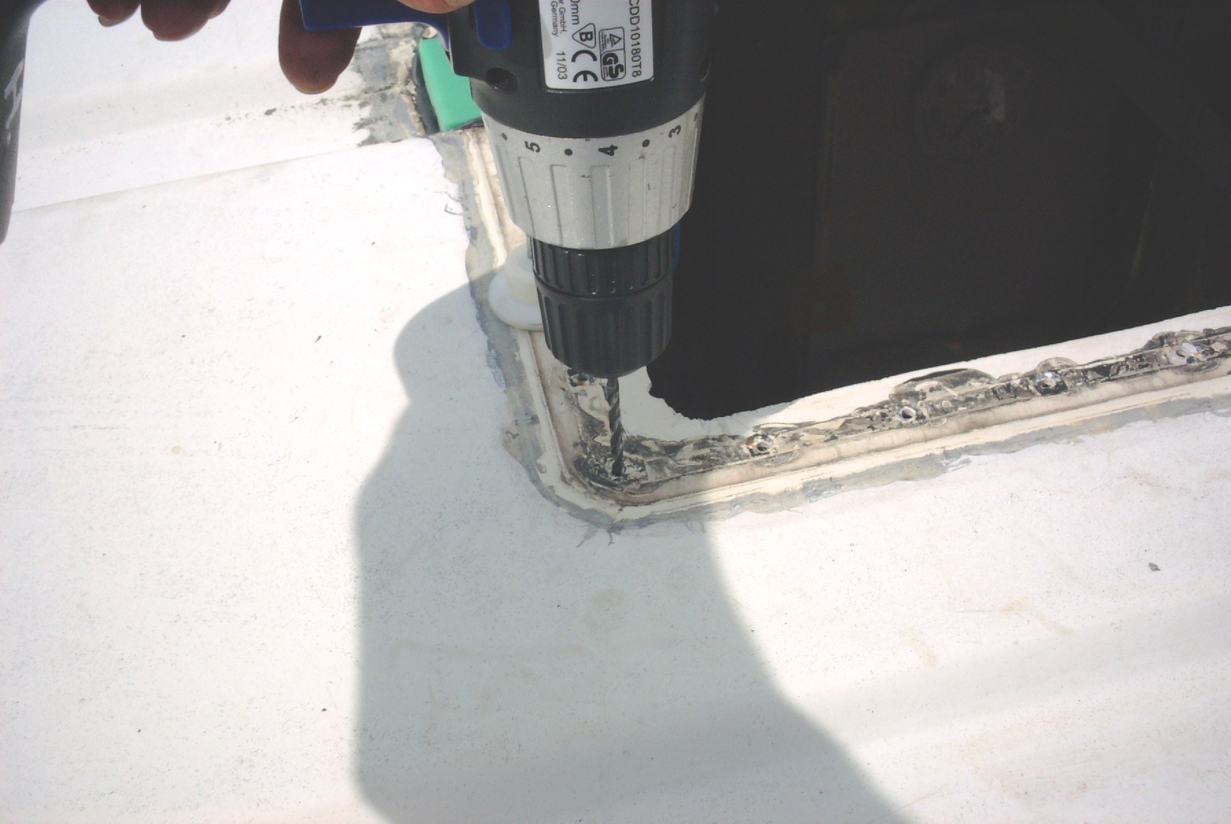 Dachhaube mit reichlich Dekalin (dauerelastisches Dichtmittel) einsetzen